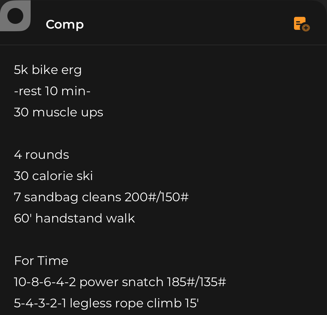 Goal: 40-60 Hang Power Snatches 30-45 Squat + Press 25-40 Burpees